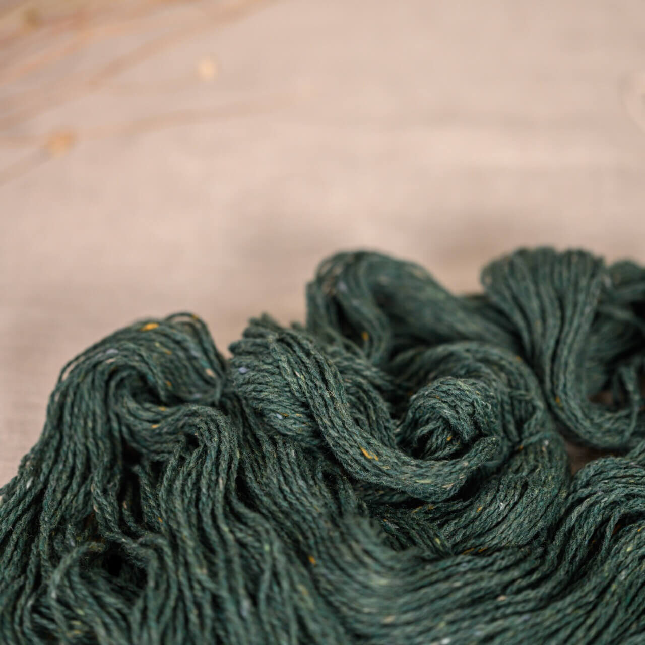 Loch Lomond is a woollen spun yarn, which means that the yarn isn’t smoothed or combed when spun as per worsted yarns, but stretched out instead, trapping lots of air in the process. This creates a very bouncy and elastic yarn with a nice volume that produces lovely and warm, yet lightweight garments.