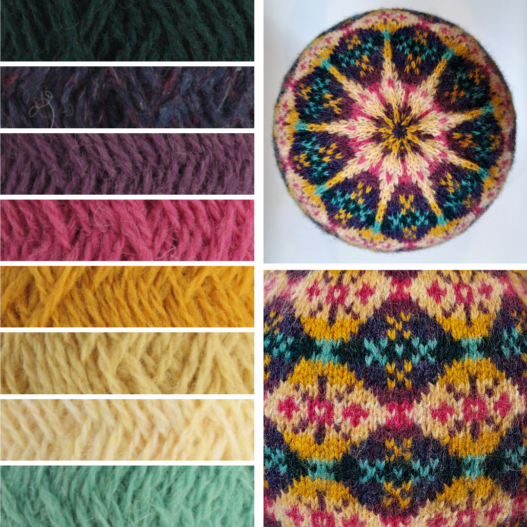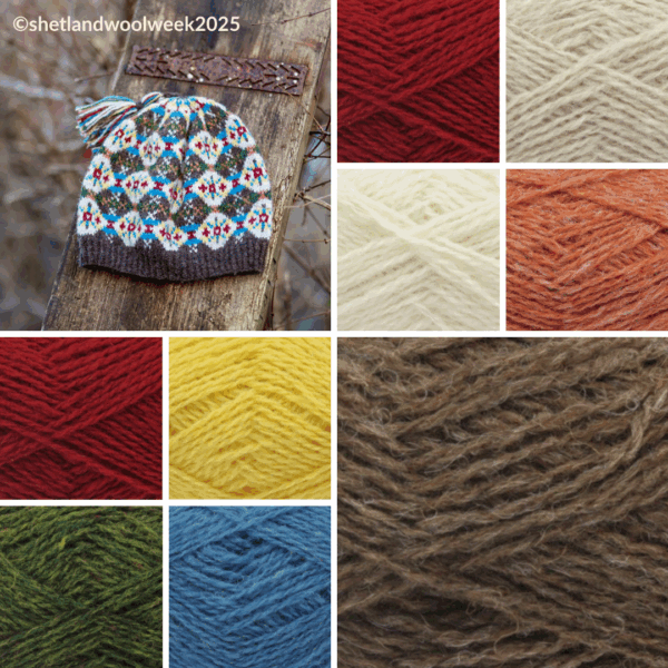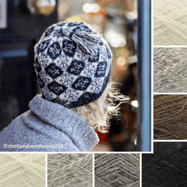 An Aal Ower Toorie knitting kit will provide all the yarn required to make your very own Shetland Wool Week hat, 2025. Inspired by the vibrant Chris Morphet ‘Allover’ exhibition which took place at the Shetland Museum and Archives, the Aal Ower Toorie celebrates the timeless beauty of Fair Isle knitting. This latest hat knitting pattern was designed by Rachel Hunter for the Shetland Guild of Spinners, Knitters, Weavers, and Dyers and features a beautiful continuous allover pattern based on a 1930’s diamond grid design.