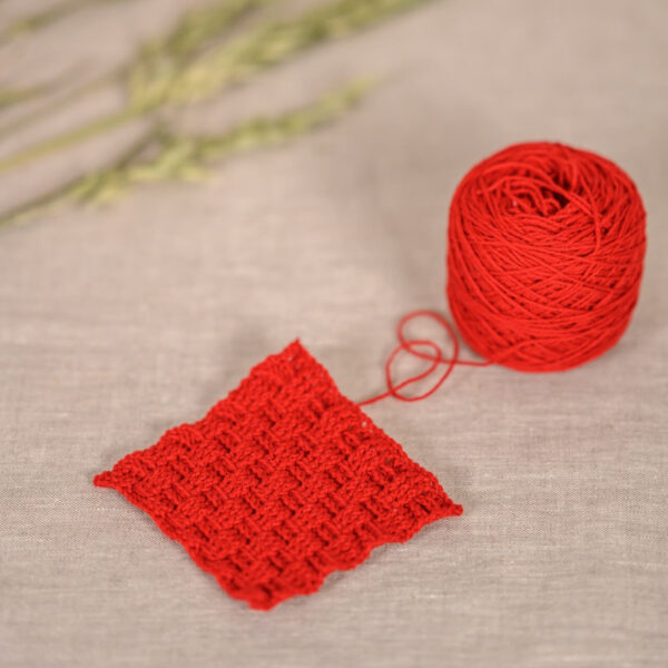 This particular yarn is hanked without being scoured (or washed, in layman’s terms) first. This means it can feel a little crispy when you first knit, but once washed, the fabric blooms and softens like butter to give it that cashmere handle.