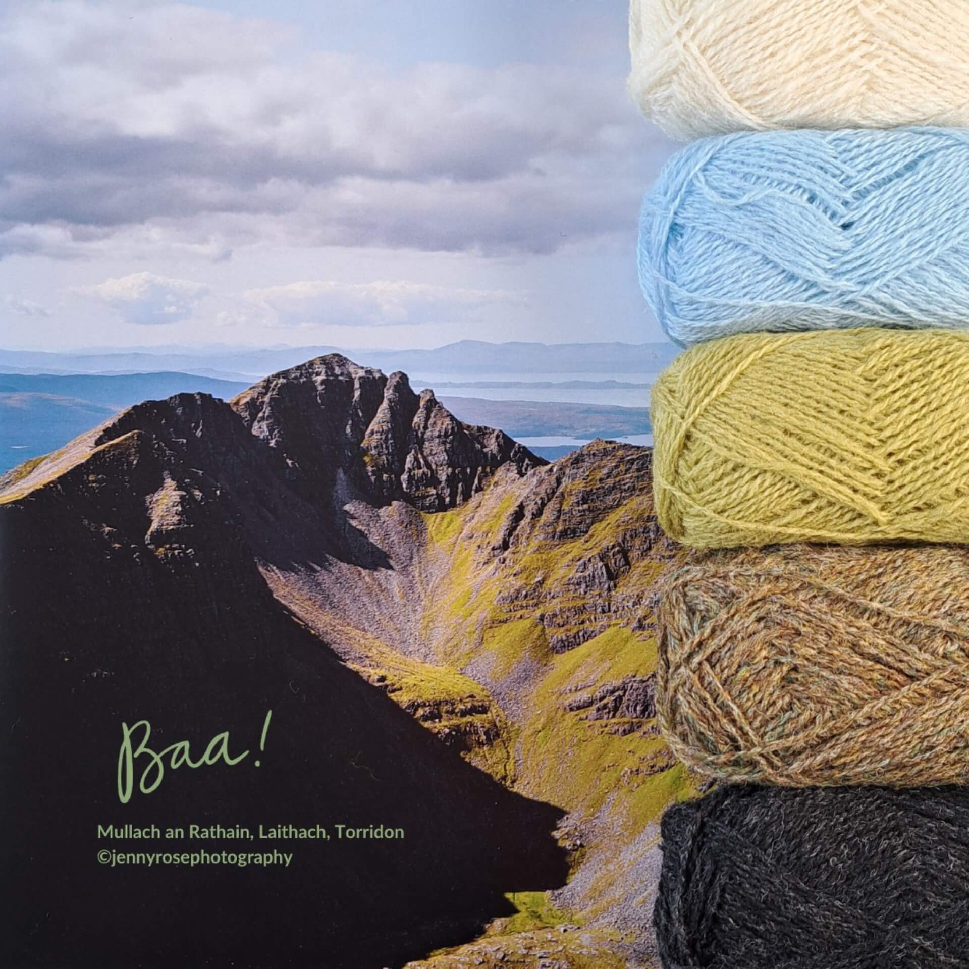 Our Mullach an Rathain Kit includes 6 x 25g balls of Spindrift yarn in the following shades: