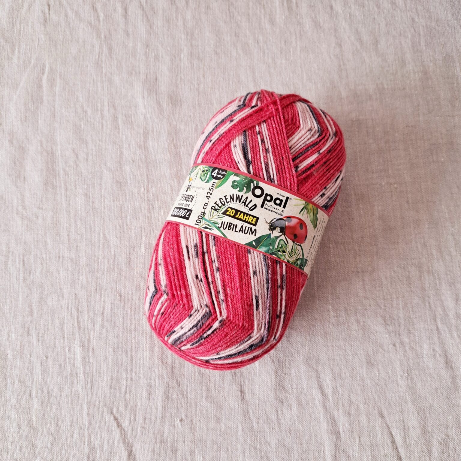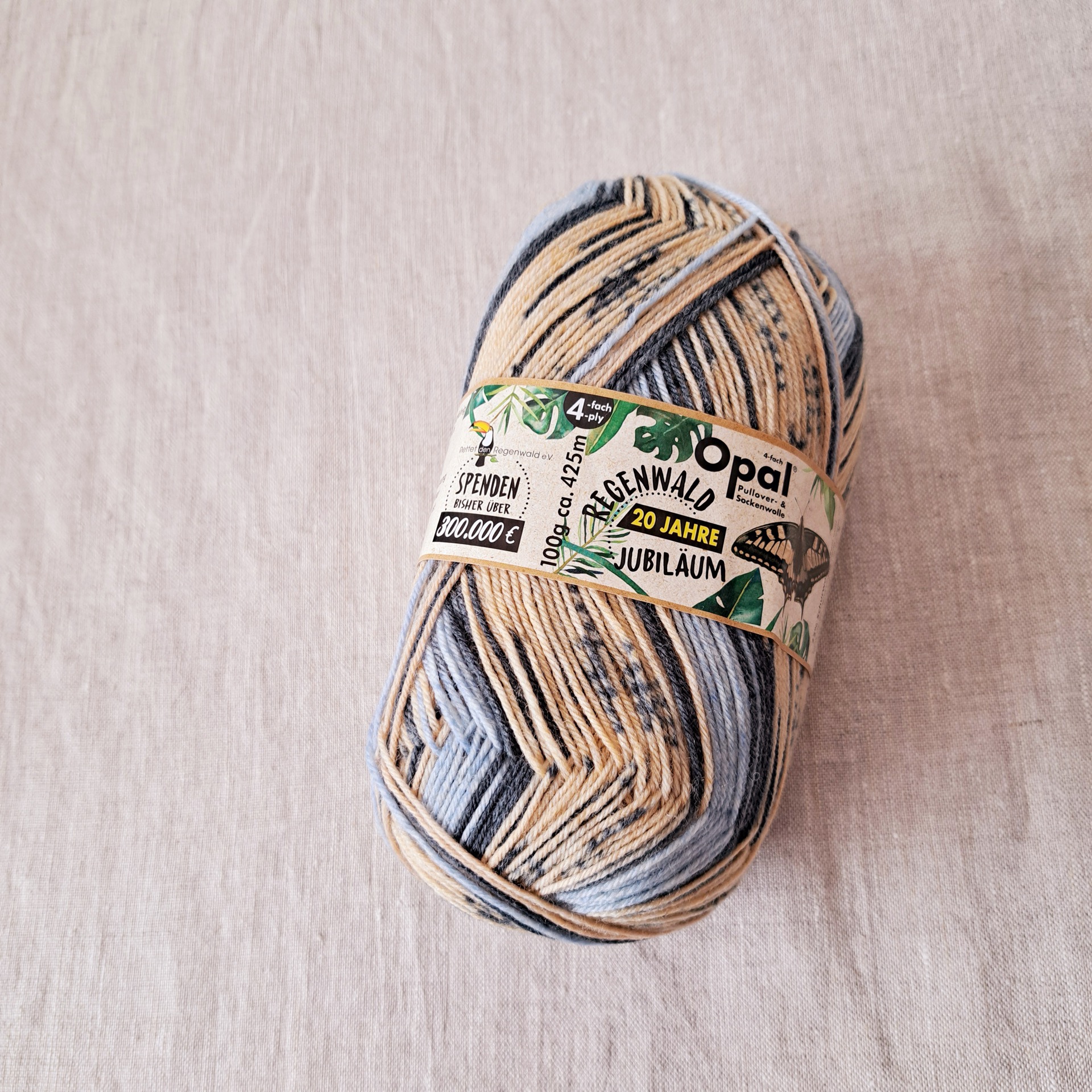 Since 2005 Opal sock yarn Rainforest Collections have been supporting Rainforest Rescue. In 2021, together with their business partners, they were able to hand over an accumulated check of €284,000 to Rettet den Regenwald, a politically independent environmental organization that is dedicated to the rainforest peoples and their habitats. The Rainforest 20 collection has helped push this accumulated total to €300,000.