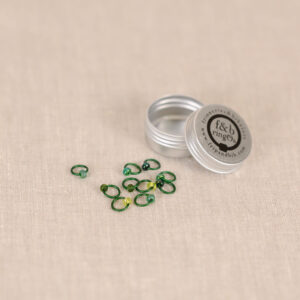 These RingOs by Fripperies & Bibelots are snag free stitch markers that will glide on and off your knitting needles with ease. Each ring is made from a lightweight anodised aluminium and finished with a colour seed bead which hides the ring join and ensures a smooth transition from one needle to the next. We think these are particularly great for lace and/or sock knitters as they won’t tangle in your finer yarns.
