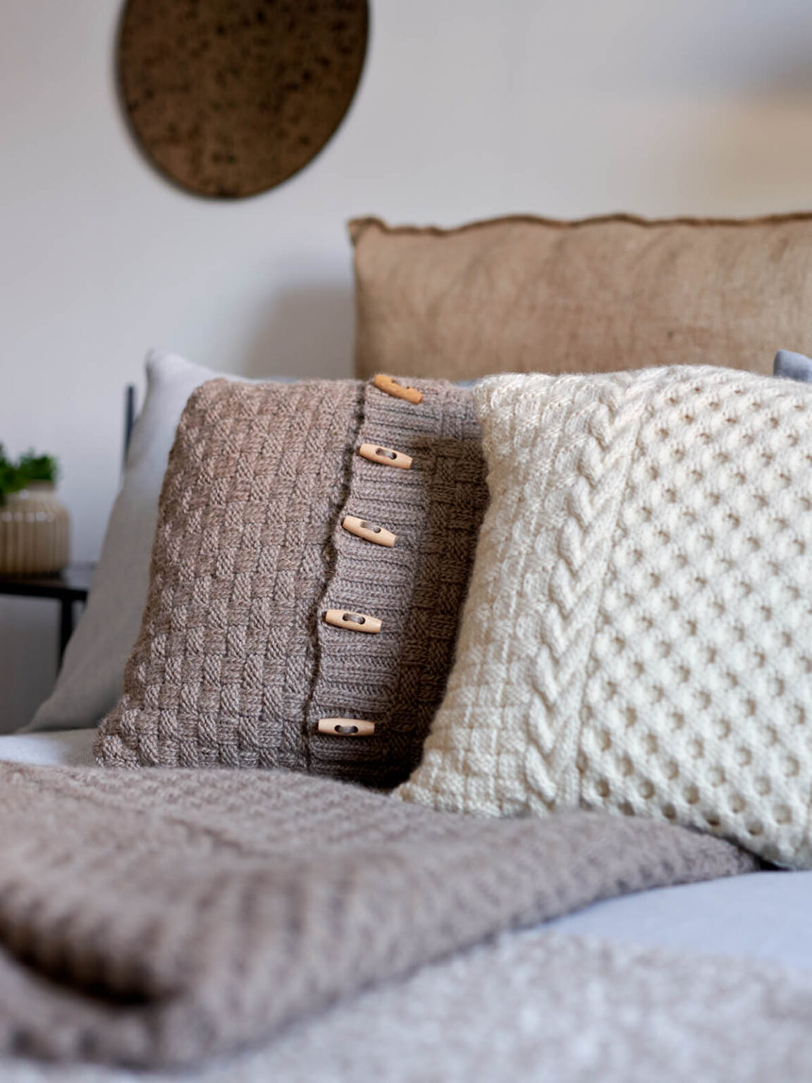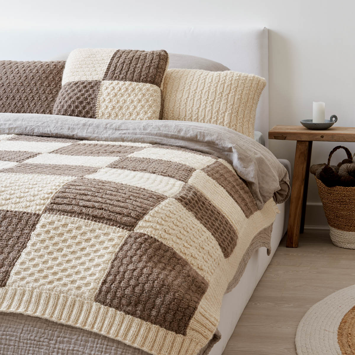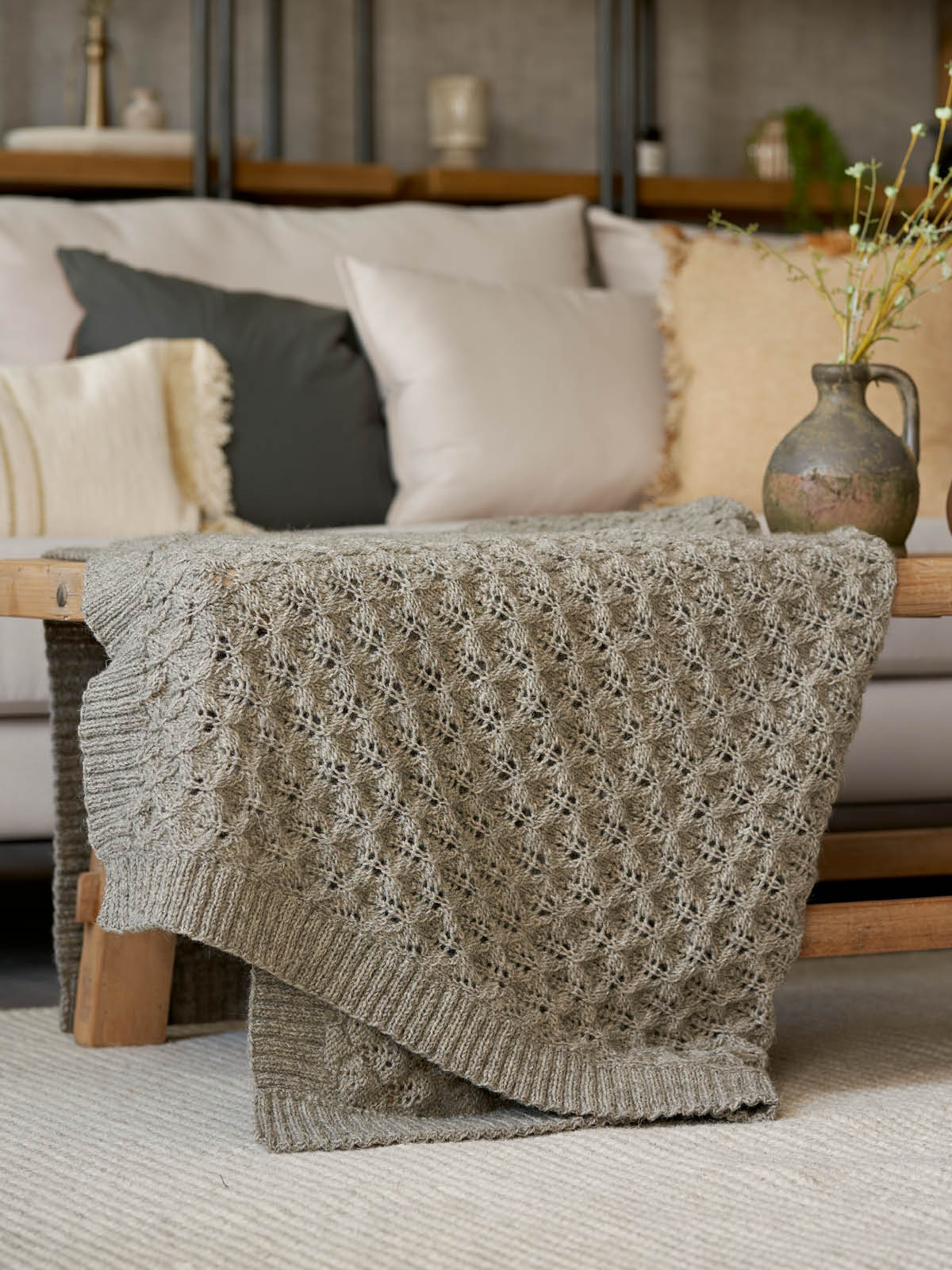 Jenny says, “I designed this collection to showcase the very best of British fibres and their superb stitch definition. These elegant and cosy homewares were a joy to design and each one highlights the unique characteristics of these special yarns. I hope you enjoy creating these timeless knits for your home.”