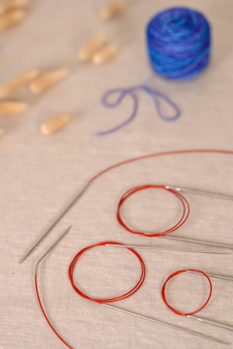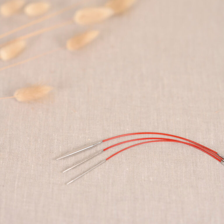 You might notice that one needle is slightly longer than the other. Indeed, one needle tip is 70mm long, whilst the other measures 45mm. The short needle is the ‘holding’ needle to be held in your left hand, whereas the longer, ‘working’ needle is held in the right. This clever design feature makes gripping the needle easier and knitting in the smaller circumference a far more comfortable experience.